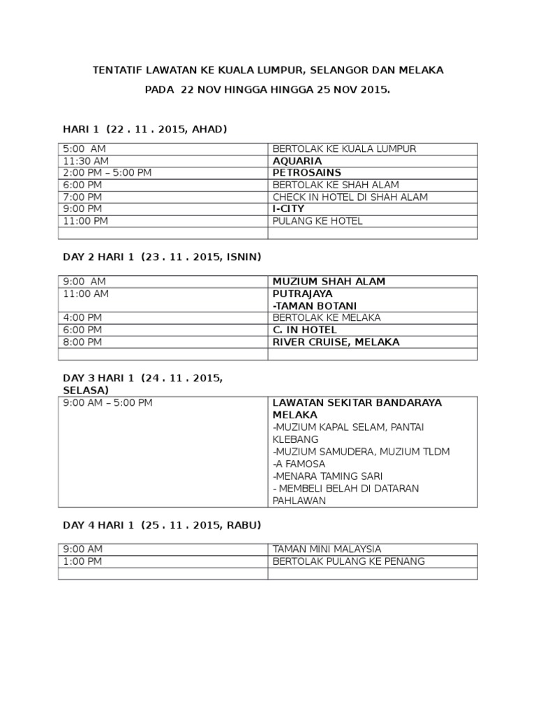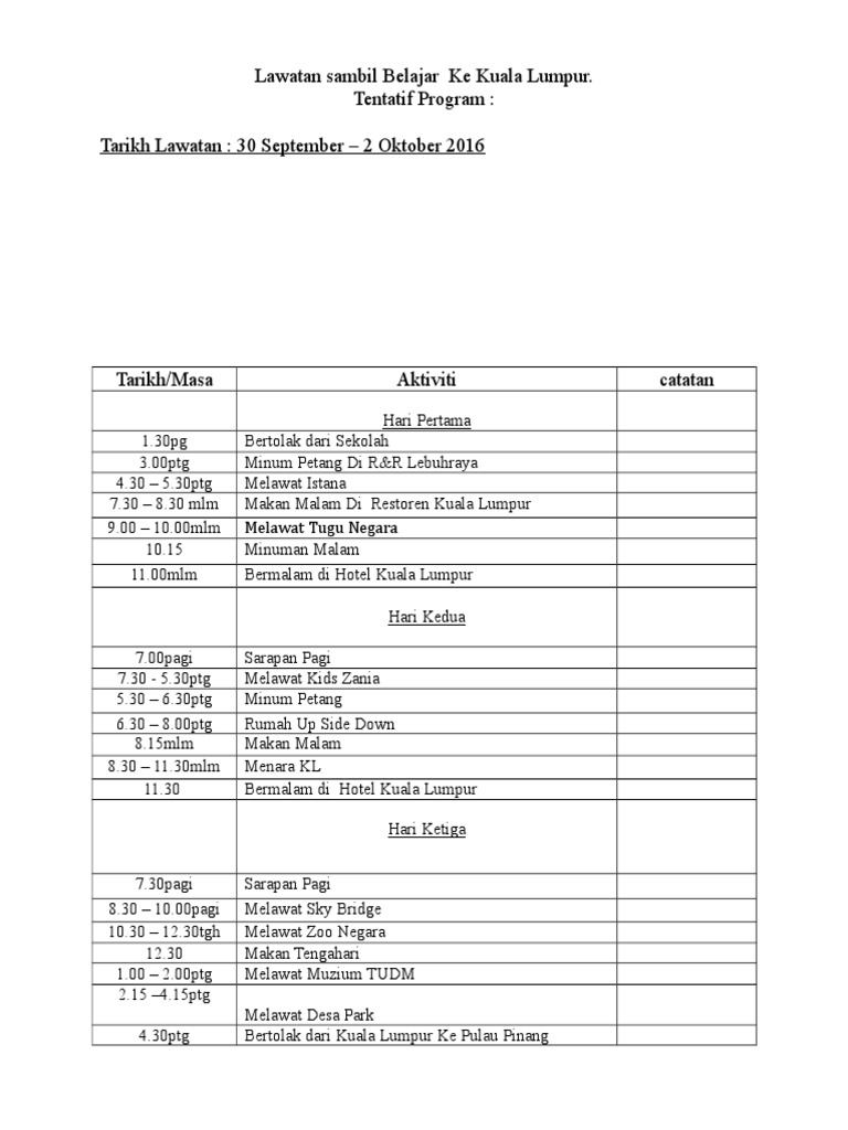 Tentatif Program Lawatan Ke Kuala Lumpur Docx from imgv2-1-f.scribdassets.com Terima kasih perpustakaan kuala lumpur kerana memberikan kerjasama yang terbaik semasa sesi penggambaran di dalam perpustakaan tersebut. Lawatan ke perpustakaan kuala lumpur. Sukacita dimaklumkan, pihak sekolah telah memutuskan untuk mengadakan program tersebut pada ketetapan berikut: Alamak!maaflah zif dan jah,cikgu tak sempat nak tunggu zif dan jah posing. Tuan / puan, program lawatan sambil belajar ke kuala lumpur salam sejahtera. Kami mula bertolak pada pukul 7.10 pagi. Lawatan prauniversiti ke kuala lumpur. Lawatan ini adalah anjuran persatuan bahasa melayu.