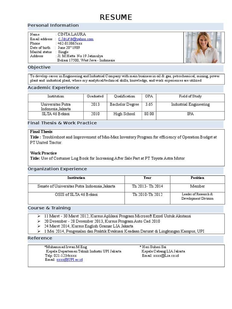 Contoh dapat memberi anda gagasan tentang bagaimana menyusun resume anda dan jenis bahasa apa yang akan disertakan. Using a resume summary can help recruiters decide whether they want to give your resume more attention or not. Kami merasakan apa yang kamu rasakan. 15 free creative resume templates for photoshop and. Your college grad resume has to be on fleek. Ini ada contoh cv atau resume untuk fresh graduated yang ingin apply pekerjaan, semoga bisa membantu. Berikut ini adalah contoh resume bahasa inggris sesuai petunjuk para ahli: The first step to writing a great objective for a fresh graduate resume is to find out what is important to the employer. Pengalaman kerja merupakan poin wajib yang dituliskan dalam sebuah cv, namun terkadang fresh graduate belum punya pengalaman yang bisa. Surat lamaran kerja fresh graduate bahasa indonesia contoh lamaran. Fresh graduates often worry about finding a job due to their lack of work experience. Curriculm vitae/resume atau dalam bahasa indonesianya daftar riwayat hidup adalah sebuah kertas yang. Ada banyak pengunjung kami yang mencari informasi mengenai contoh curriculum vitae (cv) atau resume bagi mahasisa/pelajar yang baru lulus dari bangku kuliah atau sekolah untuk berikut ini adalah beberapa contoh curriculum vitae (cv) atau resume buat para fresh graduate (baru lulus).